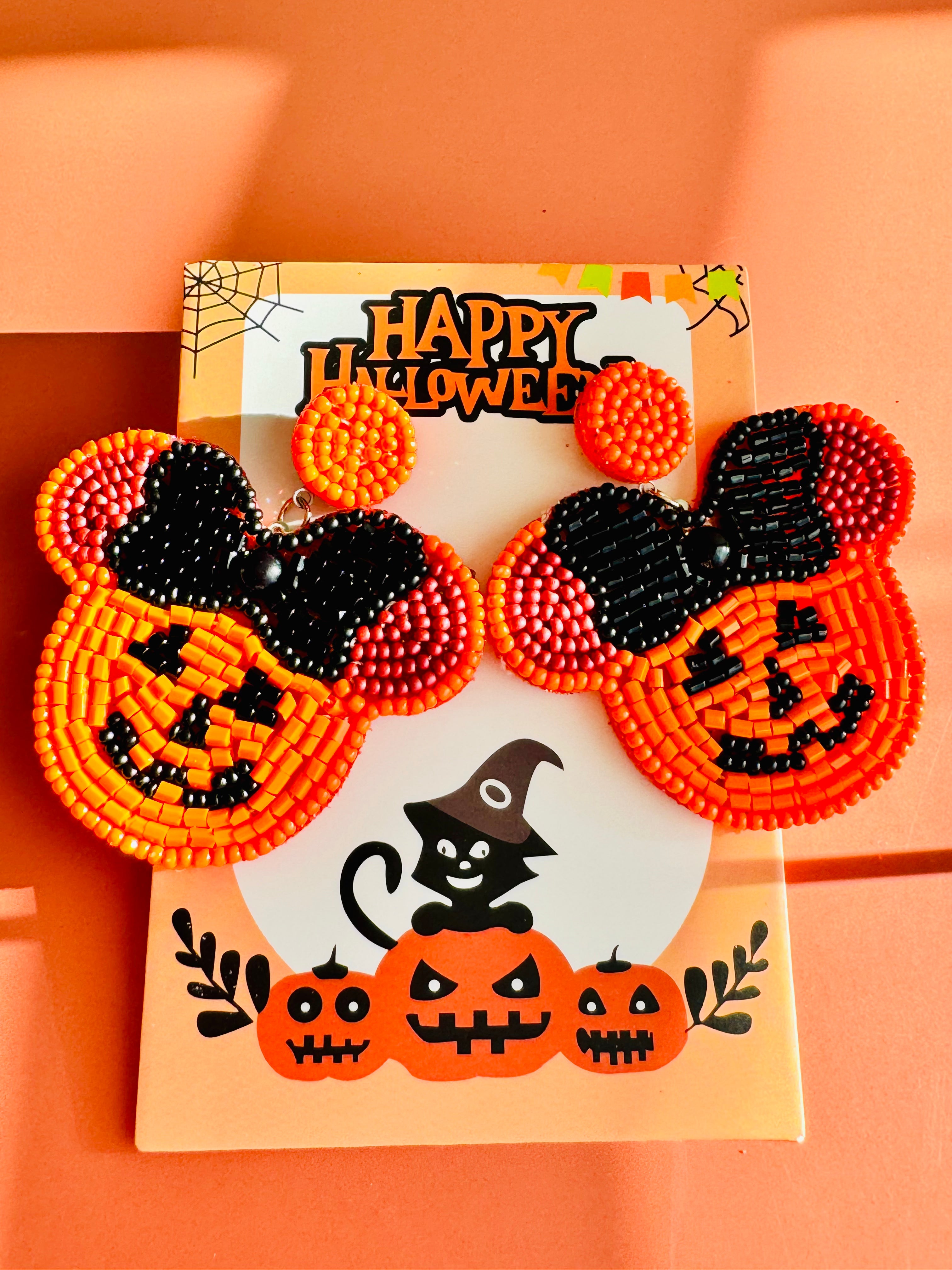 Handmade Minnie Pumpkin Earrings: Beaded Jack O' Lantern Dangle